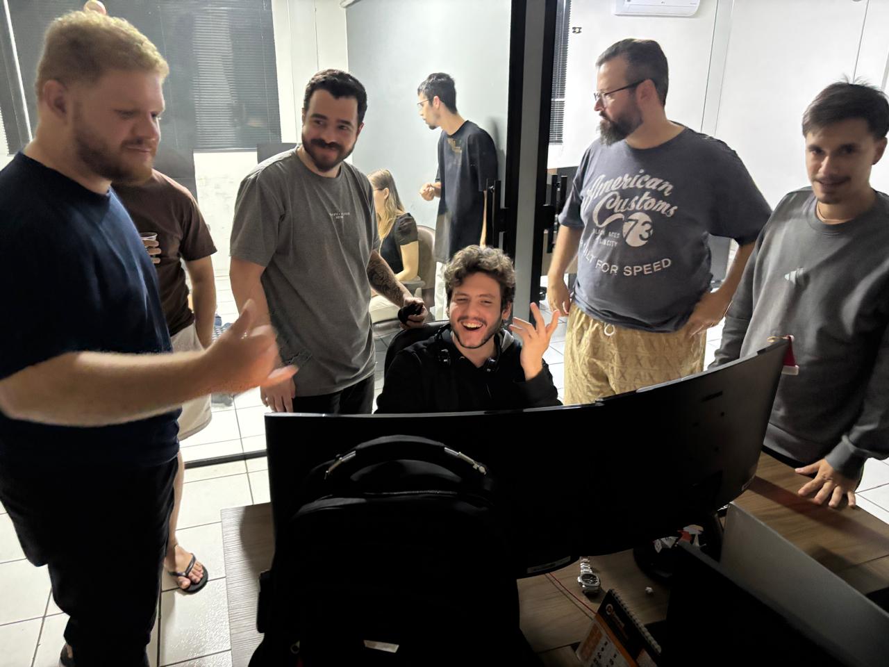 E para quem acha que jogatinas na empresa são sempre sérias, a equipe provou o contrário: a criatividade reinou, com direito a um "esquema" para garantir que os monitores fossem vistos apenas pelos olhos certos. Afinal, um pouco de mistério nunca é demais!