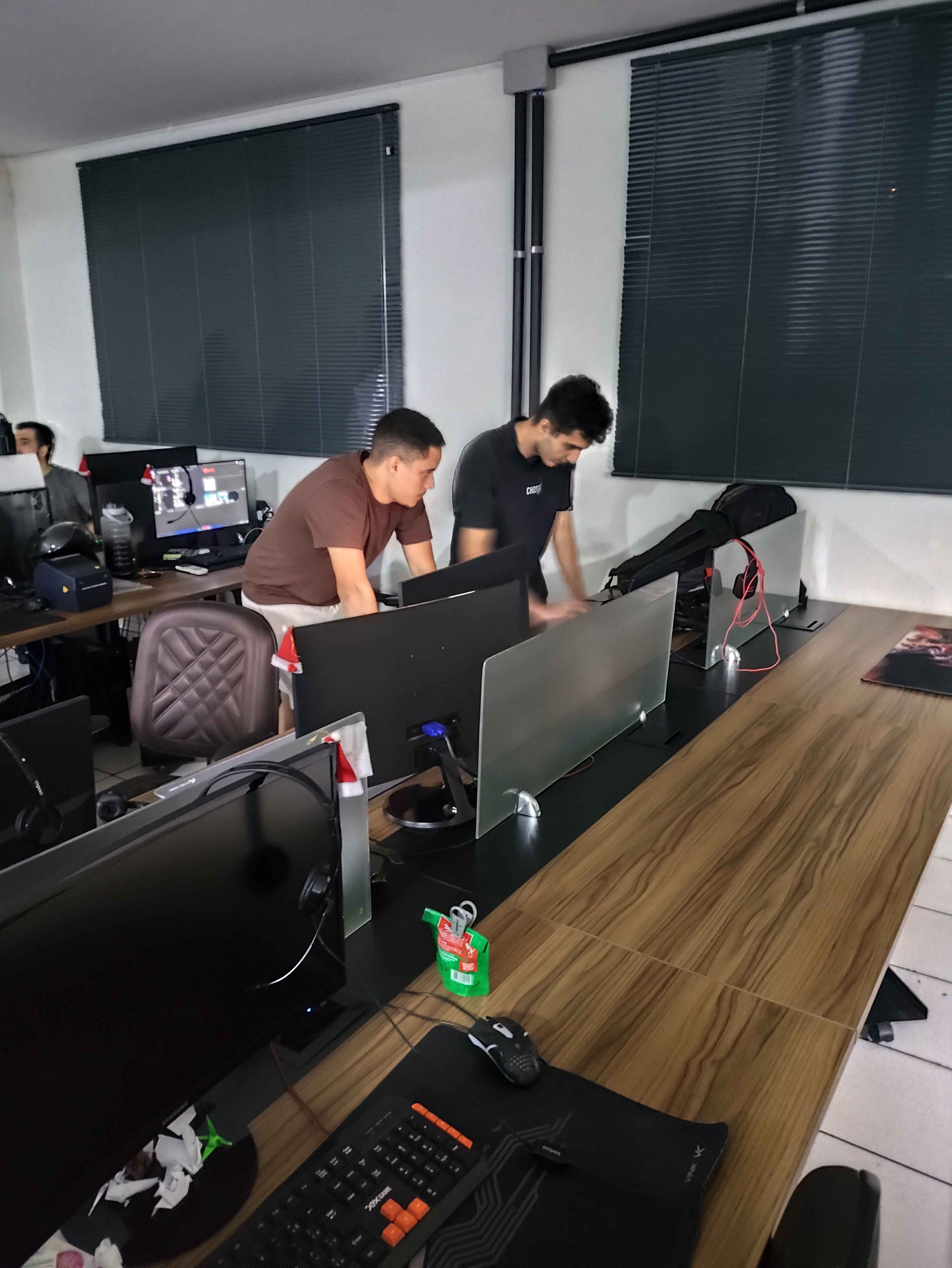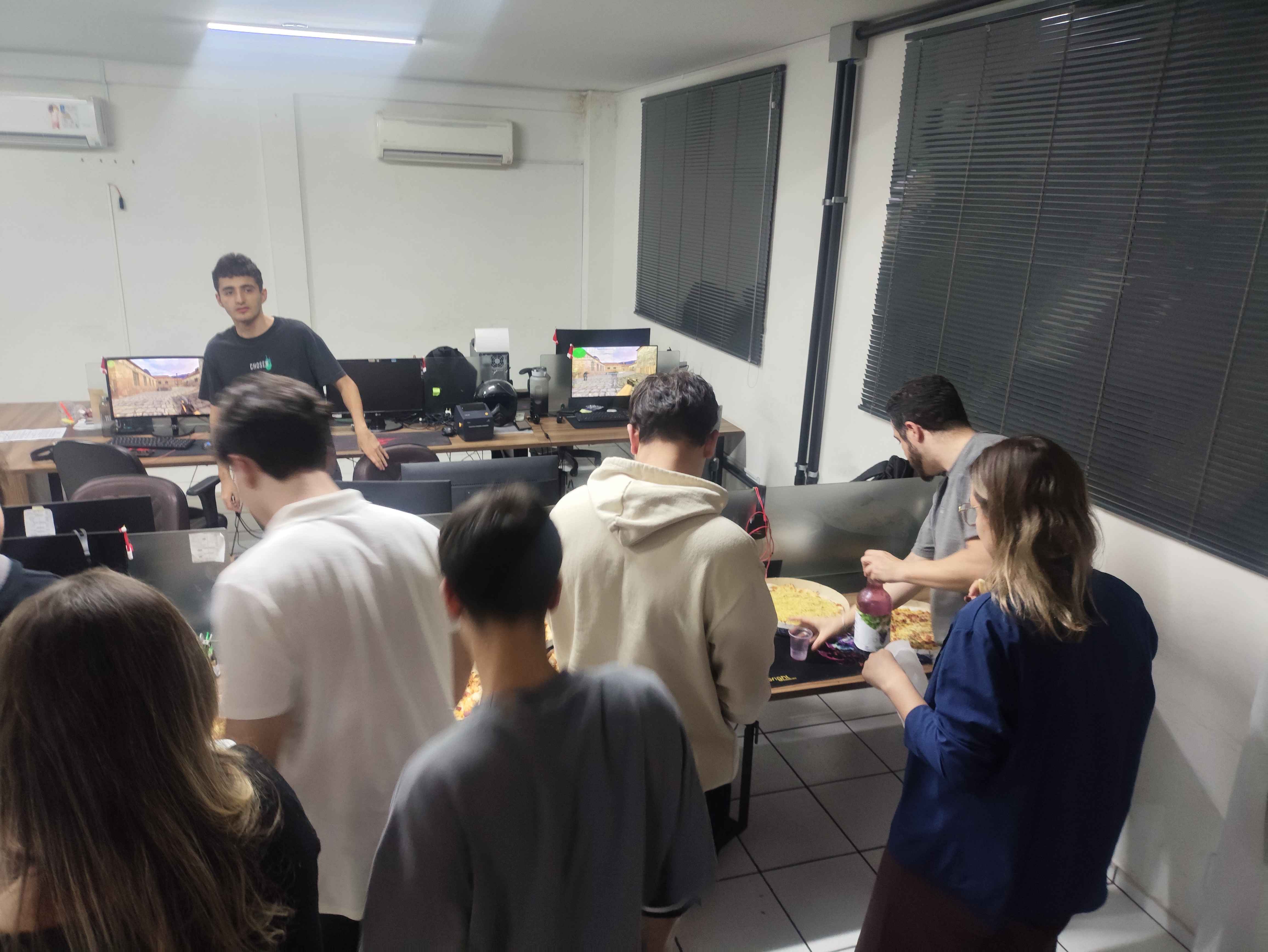 A noite de Corujão gamer desta sexta-feira (12/12) prometia muita adrenalina, e entregou! O evento, que começou pontualmente às 20h30, após a galera se reunir e fazer um aquecimento estratégico, teve tudo: mapas insanos, rounds de tirar o fôlego, uma pizza que demorou a chegar e uma "gambiarra corporativa" para garantir a privacidade dos computadores – tudo para a diversão ser completa! 🤫