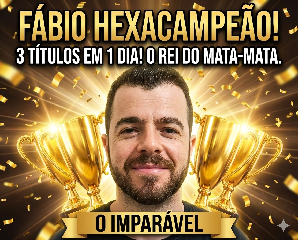 Se alguém duvidava do talento de Fábio (Bolonhesa), a dúvida acabou hoje. Em uma demonstração de resistência, técnica e frieza, o jogador alcançou um feito inédito na história da competição: levantou três taças em apenas 24 horas! O dia foi marcado pelo domínio absoluto do agora hexacampeão, que não tomou conhecimento dos adversários e transformou o campo em seu quintal particular.